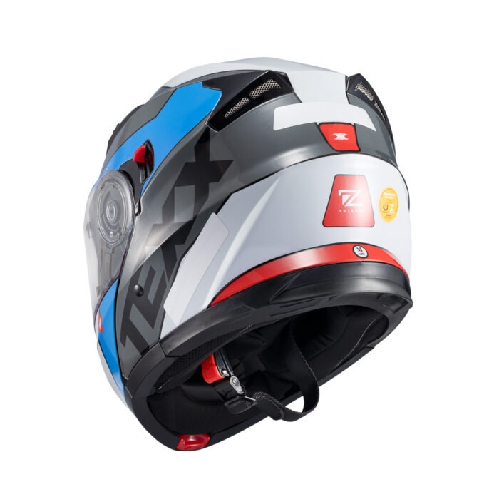 Com frente escamoteável, o capacete TEXX Gladiator V3 possui as viseiras externa e solar interna com acabamento antirrisco, antiembaçamento e com proteção UVA/UVB. O forro interno é produzido com moléculas de prata antifungo e antibactéria.